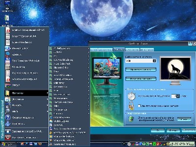 По умолчанию ставится тема оформления Corona, звуковая схема Vista, курсоры Windows Aero и волчий скринсейвер